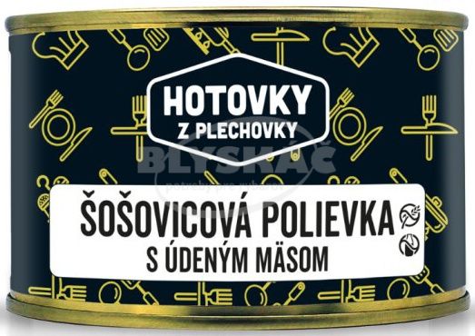 Zloženie: Pitná voda, údené bravčové stehno 9,9%, zemiaky 9,9%, šošovica 7,4%, cibuľa, mrkva, cesnak, zemiakový škrob, slnečnicový olej, červená paprika mletá, jedlá soľ, čierne korenie.