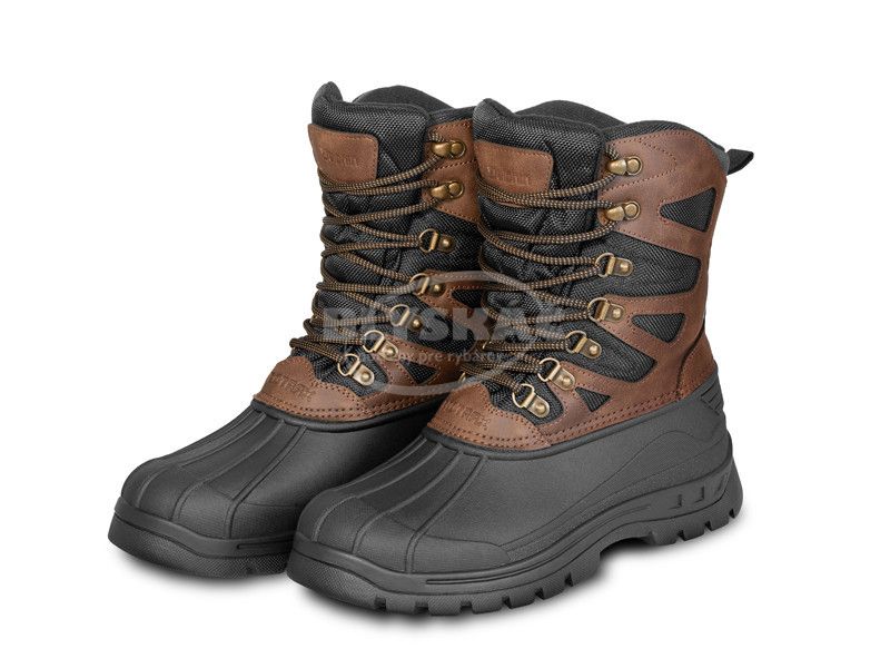 Vrchná časť topánky je vyhotovená z kombinácie umelej kože a sieťoviny, ktoré udržia vaše nohy v teple aj pri veľmi nízkych teplotách. Na zvýšenie odolnosti voči chladu prispieva kombinácia fleecového materiálu a jemnej umelej kožušiny vo vnútri topánky. Spojenie týchto vlastností zabezpečuje pohodlie aj pri vychádzkach v extrémnom počasí, napríklad pri love na dierkach, kde topánka prichádza do priameho kontaktu s ľadom.