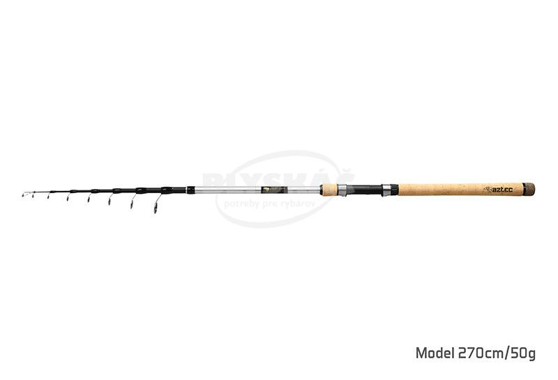 Teleskopický prút už dávno neznamená automaticky nižšiu kvalitu. To dokazuje rad teleskopov AZTEC, ktoré v sebe snúbia kompaktné rozmery pri zachovanej kvalite komponentov. Využili sme kvalitný 24T karbón na ktorom je celý prút postavený, použili veľmi dobré očká, pekný a odolný korok. Kompletný prút tak spĺňa všetky kvalitatívne požiadavky deleného prúta pri zachovaní exceletných kompaktných rozmerov.