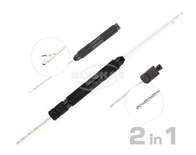 Praktická rybárska ihla a vrták 2v1, určená pre jednoduchú prípravu a nastraženie nástrah, ako sú boilies, pelety alebo partikel. Sada obsahuje ihlu s háčikom na prevlečenie vlasového prívesu cez nástrahu a malý vrtáčik na predvŕtanie tvrdších nástrah. Vďaka tomu je možné nástrahu pripraviť rýchlo, presne a bez jej poškodenia.