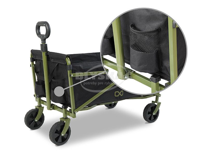 K vysoko praktickému využitiu vozíka prispievajú aj dva držiaky na fľašu či iné príslušenstvo, ktoré sú umiestnené na prednej strane. Ďalšou výhodou je pútko umiestnené na dne úložného priestoru, ktoré zjednoduší skladanie vozíka. Pre pohodlný transport vozíka v zloženom stave sú na oboch stranách prišité úchyty.
