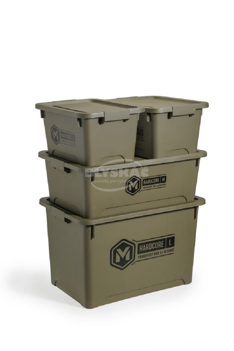 Hardcore Transport Box predstavujú spoľahlivé a bezpečné riešenie na prepravu a skladovanie nielen rybárskeho či outdoorového vybavenia. Tieto uzatvárateľné, odolné a stohovateľné boxy sú dostupné v troch rôznych veľkostiach. Zaisťujú perfektnú organizáciu a poriadok pri vode, pri preprave alebo v garáži. Veľkou výhodou je ich „hardcore“ prevedenie. Robustný nárazuvzdorný plast odoláva mechanickému poškodeniu. Špeciálne tvarované veko je vybavené spevňujúcimi prelismi, ktoré zároveň napomáhajú zaistiť stabilnú polohu boxov pri ich stohovaní na seba. Veko vďaka svojmu nízkemu profilu kopíruje hornú hranu boxu a zbytočne nevyčnieva. Nedochádza tak k plytvaniu miestom pri naskladaní viacerých boxov na seba. Robustné zámky veka sú ľahko ovládateľné a neprekážajú ani v prípade manipulácie s otvoreným boxom bez veka. Pri uzavretí zámky bezpečne drží veko na svojom mieste aj v prípade otrasov alebo pri prevrátení boxu. Prázdne boxy je veľmi ľahké skladovať - pasujú totiž jeden do druhého. Veľký a stredný box majú zhodný pôdorys a líšia sa iba výškou. Stredný box je svojou výškou ideálny na zasunutie pod lehátko. Malý box má polovičný pôdorys a skvele sa hodí na drobnejšie príslušenstvo, do člna aj ako box na nástrahy.